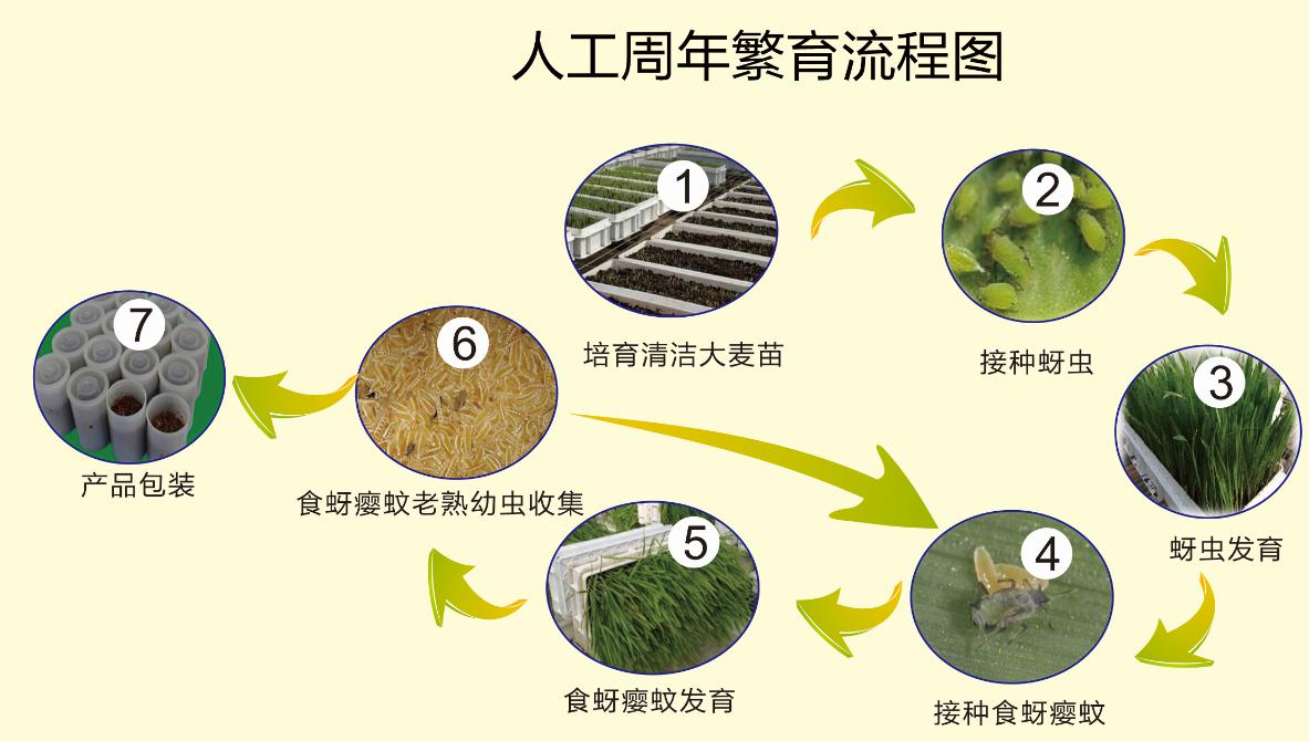 常年保持日收丽蚜小蜂8万头以上,可制卡400张(200蜂/卡),可每天发货。常年保持食蚜瘿蚊日产30瓶(100头/瓶),可每周发货1次。
