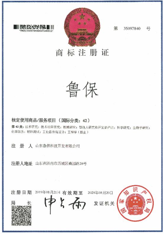 山东鲁保科技开发有限公司注册了“鲁保”商标。有效期至2029年8月20日