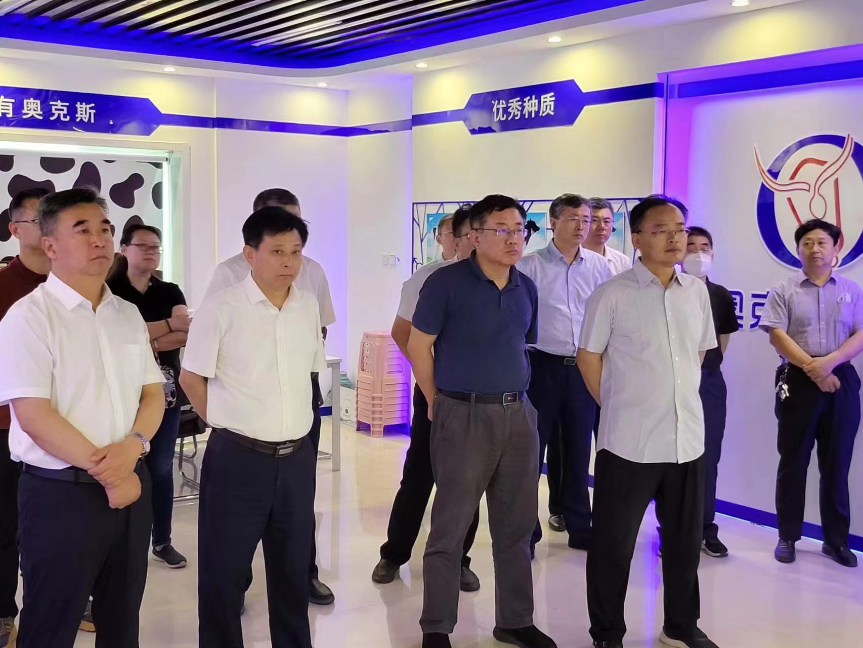 考察团实地调研考察了奥克斯种公牛站,对奥克斯公司牵头开展的国家奶牛良种联合攻关项目进展情况进行了深入了解,该项目主要任务是以分子育种技术为主要手段筛选核心种质和特色种质,开展活体采卵—体外胚胎生产,组建全国奶牛育种核心群,建设达到国际先进水平的核心育种场。